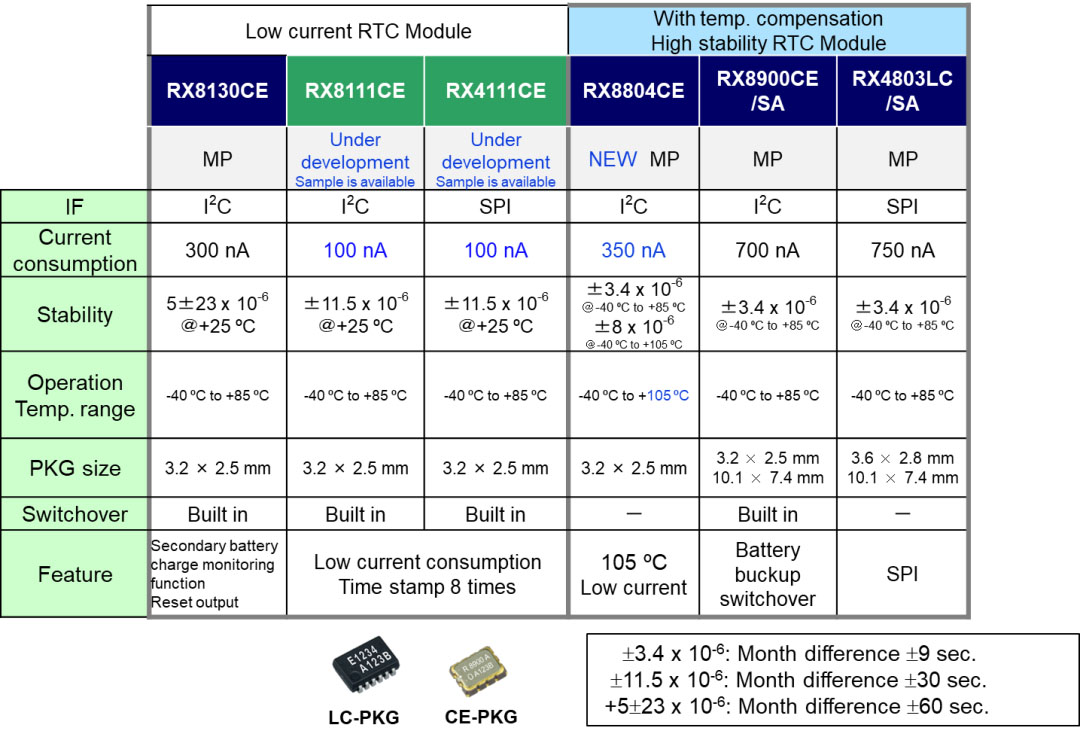 RX8111CE是一個(gè)集成了32.768khz晶體振蕩器的低電壓(1.1V~5.5V)低功耗(0.1uA)小尺寸(3225)I2C接口10引腳實(shí)時(shí)時(shí)鐘模塊。 RX8111CE實(shí)時(shí)時(shí)鐘模塊除了提供可記錄8個(gè)事件的時(shí)間戳可替換RX8130CE...