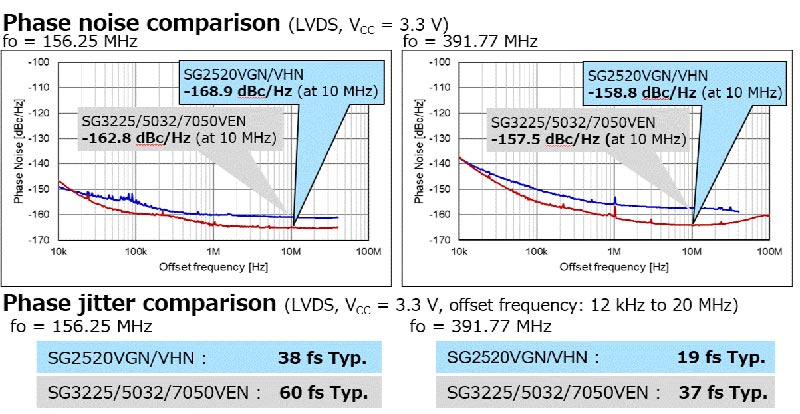 愛普生2020年低量產(chǎn)的SG2520EGN是一款2520封裝25ppm高精度,105℃高溫,≤50fs的超低抖動(dòng)高頻差分有源晶振,是一款HFF基頻晶振,特別適用于5G通信用參考時(shí)鐘、支持400G光模塊通信。標(biāo)準(zhǔn)頻率有15.6.25MHz,212.5MHz、500MHZ等。作為一款6腳雙輸出差分晶振...