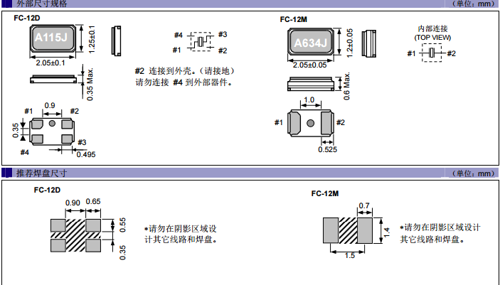 可以看出,F(xiàn)C12M與FC12D相比,F(xiàn)C12D比FC12M更薄,除了體積,我們可以看出FC-12D是兩腳貼片晶振,而FC-12M是四腳晶振,所以這兩者是否可以通用,也要看自身電路焊點是否可以通用,因為小尺寸,超薄的特點,所以FC-12D與FC-12M通常用在消費類產(chǎn)品如信用卡等產(chǎn)品中。
